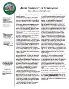 The Avon Chamber of Commerce meets theĀ first Tuesday of every month at noon at a location TBA.